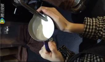 方法很簡單!我們奶缸的姿勢不是垂直于地面的!而是奶缸的頂部不動,底部往左移一點,再往上移一點!(也就是說奶缸是靠右下方傾斜的),但是移動的時候切記上面是不動的喲!蒸汽管要時刻保持在漩渦點上面!