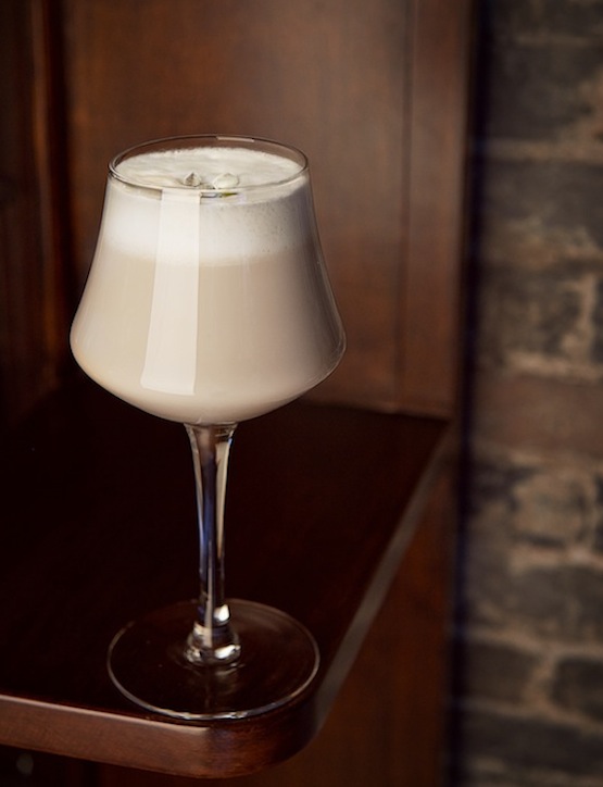 I wanted to do a twist on the classic Coffee Cocktail – yes, the drink that, despite its name, contains no coffee (the title comes from how it looks in the glass). The idea was to give it a kind of Middle Eastern rework. So, I thought cardamom would be an ideal ingredient because it had a similar aroma to Arabian coffee. I switched out the cognac in the original Coffee Cocktail for rhum agricole for a totally different kind of funky, vegetal flavour but, since some rhum agricole is aged in ex-cognac barrels, I could still maintain an aromatic reference to cognac. Madeira works very well with cardamom and offers a nice balance between alcohol and sweetness. This is a full-bodied drink that works well as an after-dinner digestif. I called it M E Cafe Latte Cocktail – the “M E” stands for “Middle Eastern”. And “Cafe Latte” because it’s much lighter in colour than the original Coffee Cocktail.